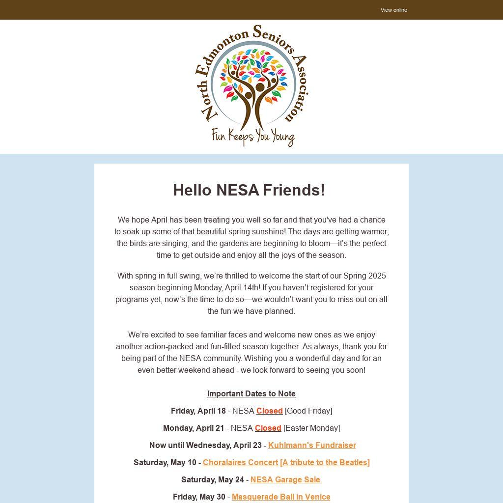 We’re excited to see familiar faces and welcome new ones as we enjoy another action-packed and fun-filled season together. As always, thank you for being part of the NESA community. Wishing you a wonderful day and for an even better weekend ahead - we look forward to seeing you soon!