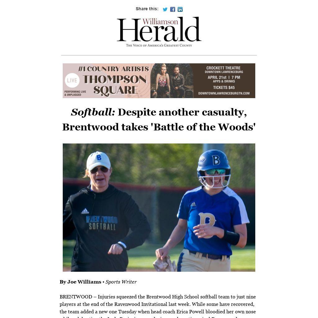 Softball: Despite another casualty, Brentwood takes 'Battle of the Woods'