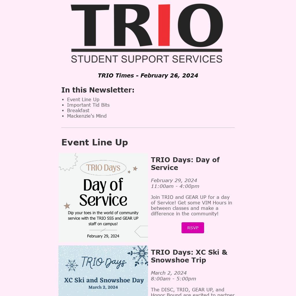 We are going to start doing a monthly student spotlight in the TRIO Times! If you are interested in being in the spotlight, please fill out the form on the TRIO Website!