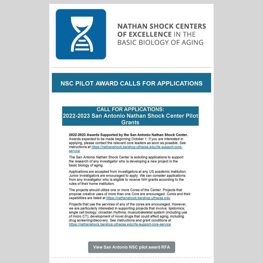 This newsletter is produced by the American Federation for Aging Research, which serves as the Coordinating Center of the Nathan Shock Centers of Excellence in the Basic Biology of Aging. The Nathan Shock Centers program is funded by the National Institutes of Health National Institute of Aging. Research reported in this publication was supported by the National Institute on Aging of the National Institutes of Health under Award Number U24AG056053. The content is solely the responsibility of the authors and does not necessarily represent the official views of the National Institutes of Health.