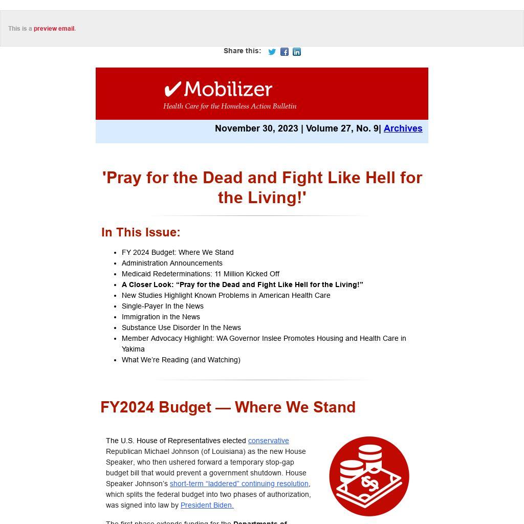 Did you receive Mobilizer as a forwarded email or hear about it via social media? Register now to receive our action alerts each month!