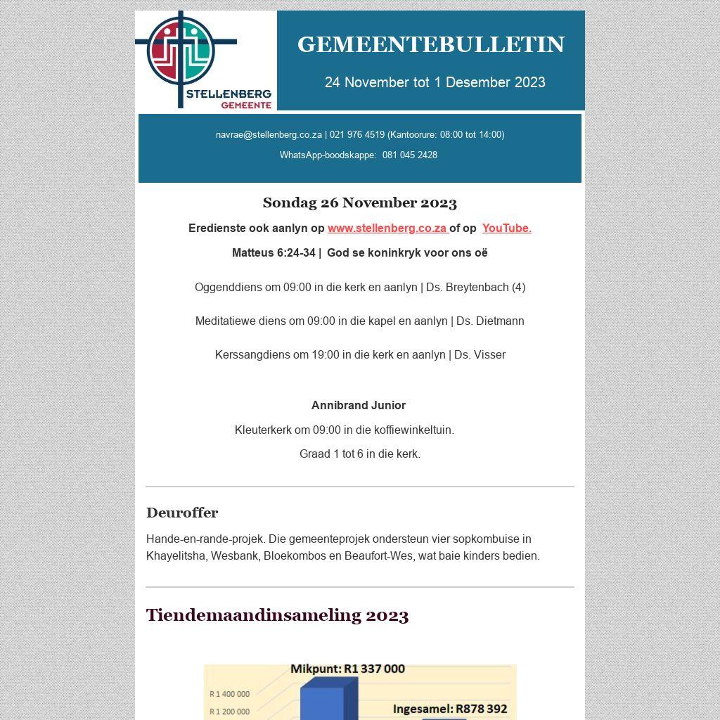 Eredienste ook aanlyn op www.stellenberg.co.za of op  YouTube.