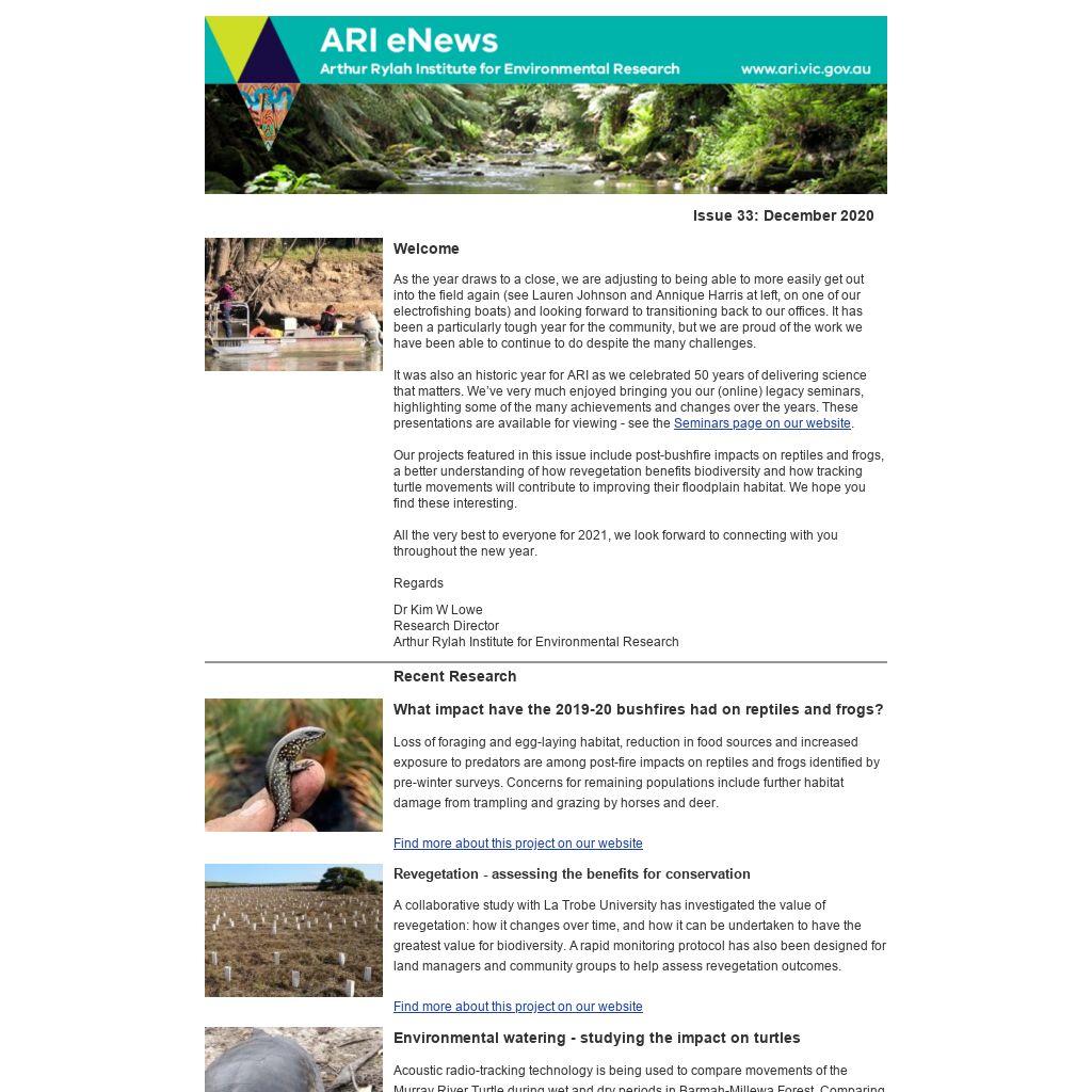 If you know someone who may like to receive the ARI eNews, forward this email on using the 'Share this' option at the top. If this has been forwarded on to you there is an option to sign-up below, or use the ‘Subscribe’ button on our website, or email research.ari@delwp.vic.gov.au to be added to the ARI eNews mailing list.