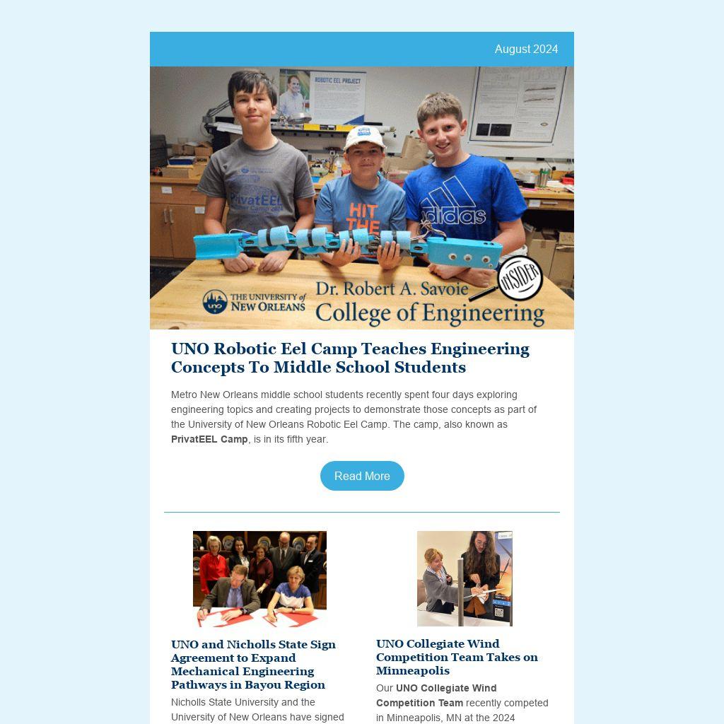 UNO Robotic Eel Camp Teaches Engineering Concepts To Middle School Students |
