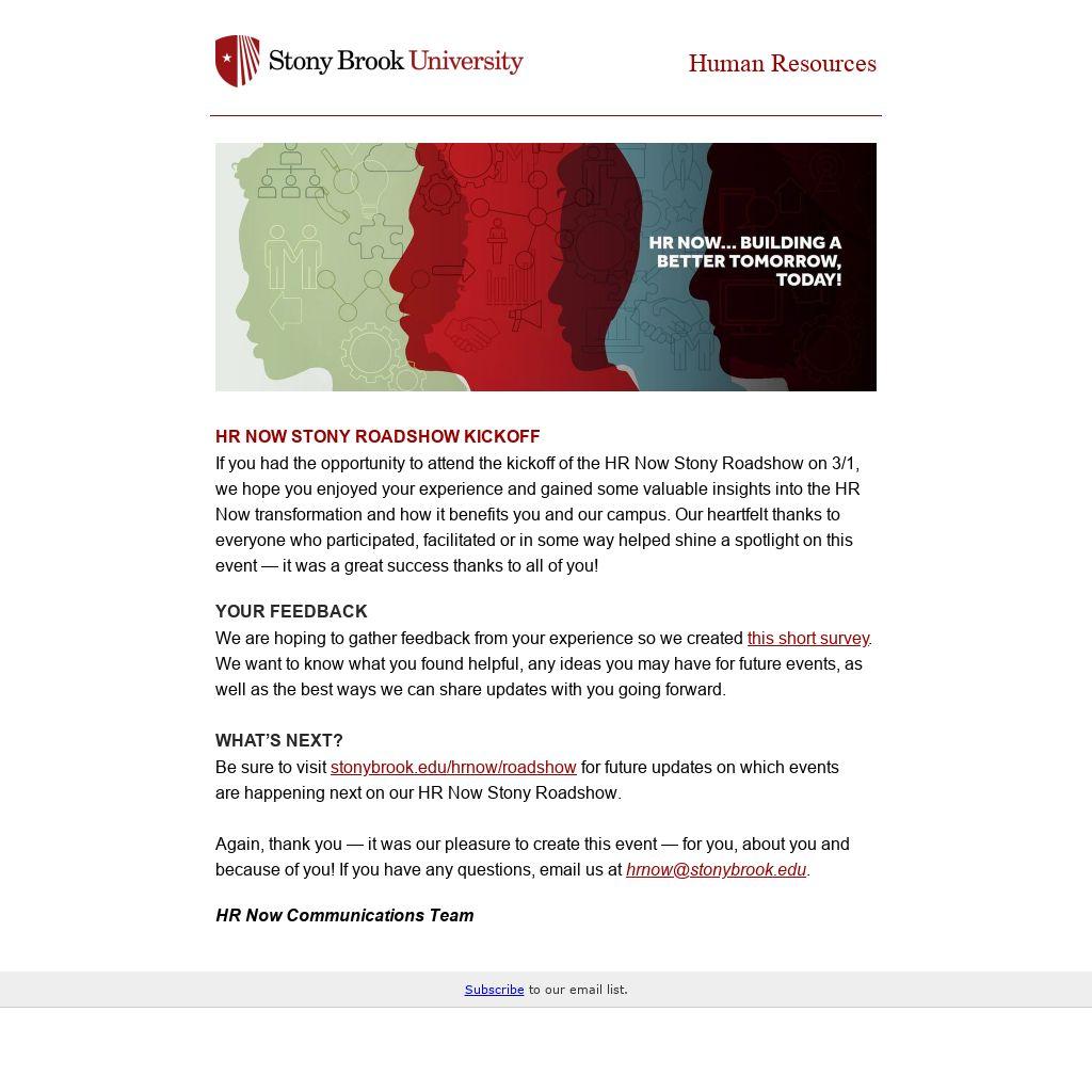Again, thank you — it was our pleasure to create this event — for you, about you and because of you! If you have any questions, email us at hrnow@stonybrook.edu.
