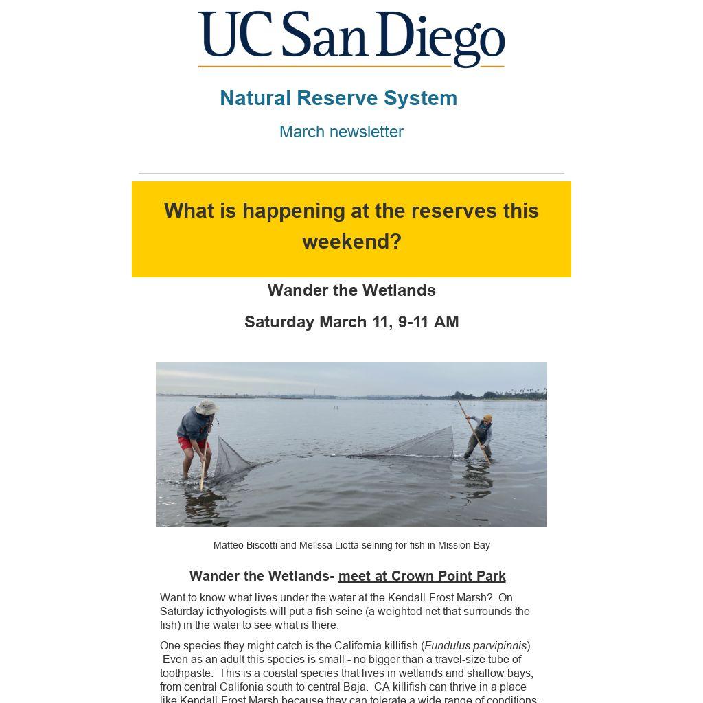 Scripps Coastal Reserve. Help the native plants take back their territory! No experience necessary. Please email