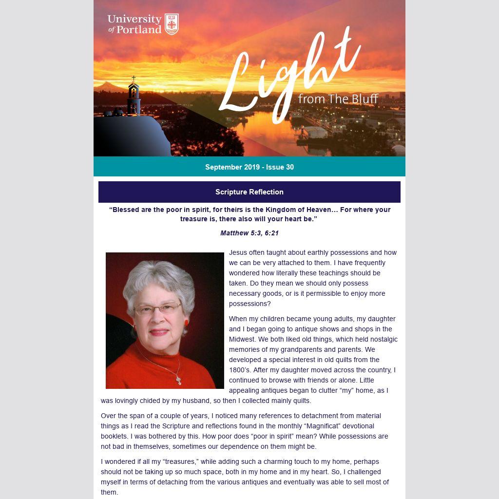 Over the span of a couple of years, I noticed many references to detachment from material things as I read the Scripture and reflections found in the monthly “Magnificat” devotional booklets. I was bothered by this. How poor does “poor in spirit” mean? While possessions are not bad in themselves, sometimes our dependence on them might be.