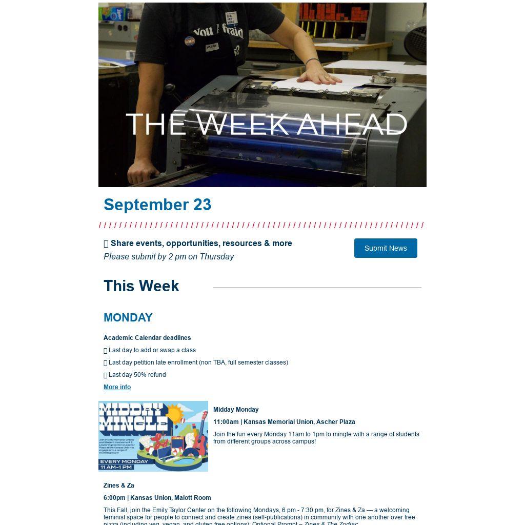 ArcD will be hosting an Open House for KU’s Family Weekend. This is an opportunity to show your family around Marvin and Chalmers, and share what you’ve been learning! We'll also have demonstrations of our laser cutters and RISO printers (your family won’t leave empty handed!) Email nikkihammond@ku.edu with questions. Please RSVP to this event.