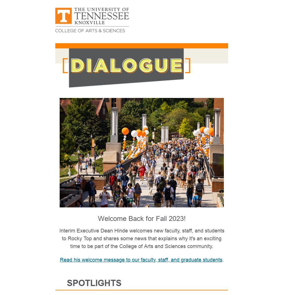 Faculty also have an opportunity to have lunch with our first-year students at the New Vol Picnic, hosted by New Student Orientation. Arts and Sciences students will be in the Humanities Plaza August 22 in two groups from 11 a.m. to 12 p.m. and from 11:45 a.m. to 12:45 p.m. Faculty are welcome to attend either lunch!