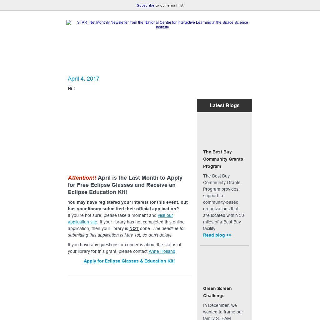 Attention!! April is the Last Month to Apply for Free Eclipse Glasses and Receive an Eclipse Education Kit!