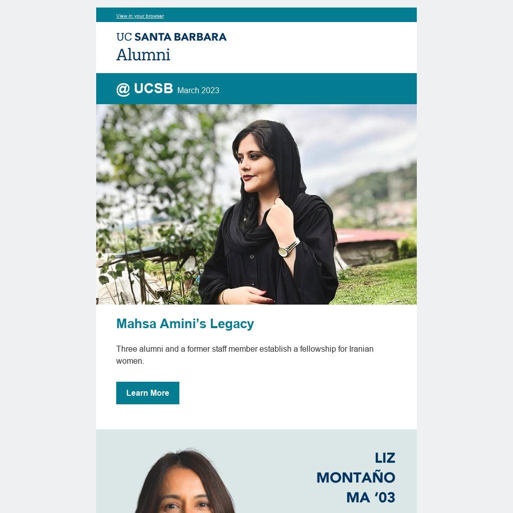 If you do not wish to receive any emails from UC Santa Barbara Institutional Advancement (this includes event invitations, newsletters, networking opportunities and stories of philanthropy), you can