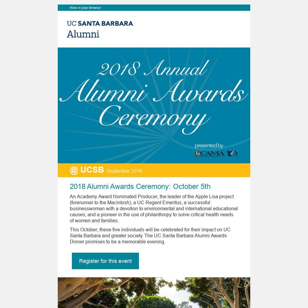 This October, these five individuals will be celebrated for their impact on UC Santa Barbara and greater society. The UC Santa Barbara Alumni Awards Dinner promises to be a memorable evening.