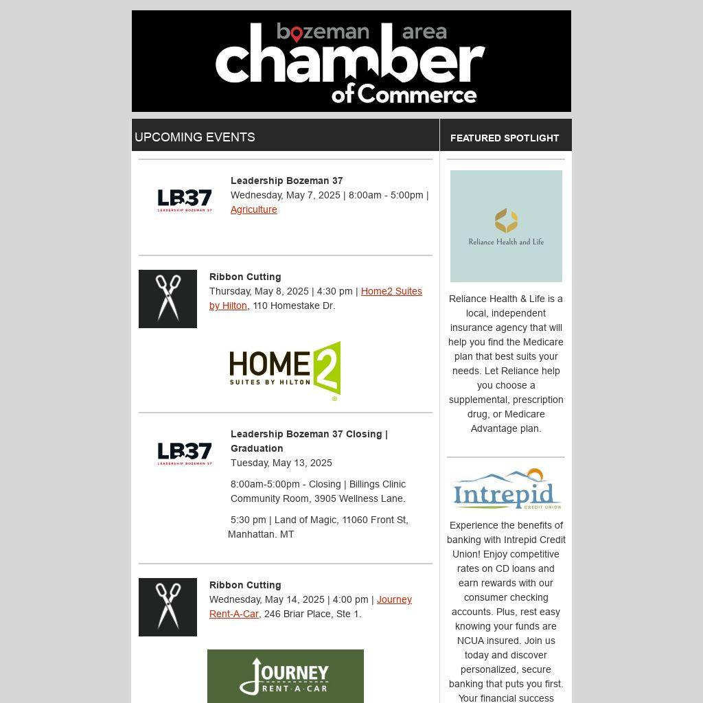Join us in celebrating the grand opening of Home2 Suites by Hilton in Bozeman’s Four Corners! Enjoy free drinks, appetizers, raffle prizes, and a property tour as we toast this exciting new addition to the community. Don’t miss this special evening of fun, connection, and hospitality. Click here to learn more.