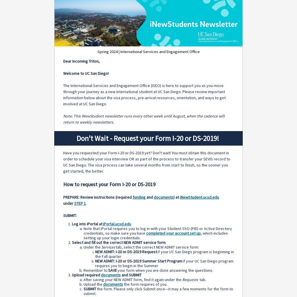 - NEW ADMIT: I-20 or DS-2019 Request if your UC San Diego program is beginning in the Fall quarter