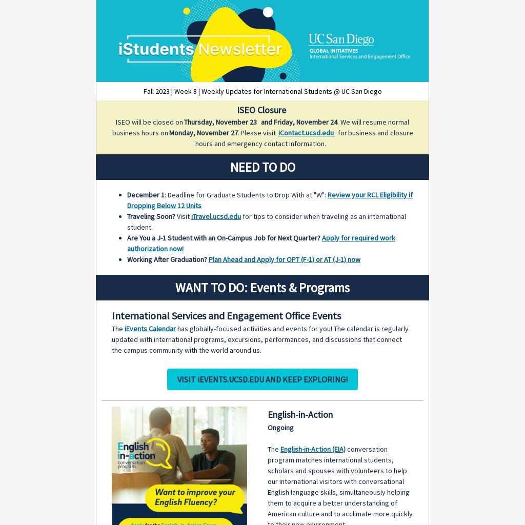 Fall 2023 | Week 8 | Weekly Updates for International Students @ UC San Diego