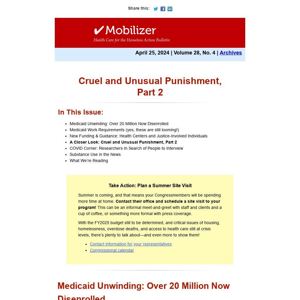 Did you receive Mobilizer as a forwarded email or hear about it via social media? Register now to receive our action alerts each month!