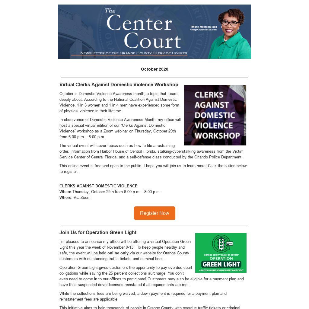In observance of Domestic Violence Awareness Month, my office will host a special virtual edition of our “Clerks Against Domestic Violence” workshop as a Zoom webinar on Thursday, October 29th from 6:00 p.m. - 8:00 p.m.