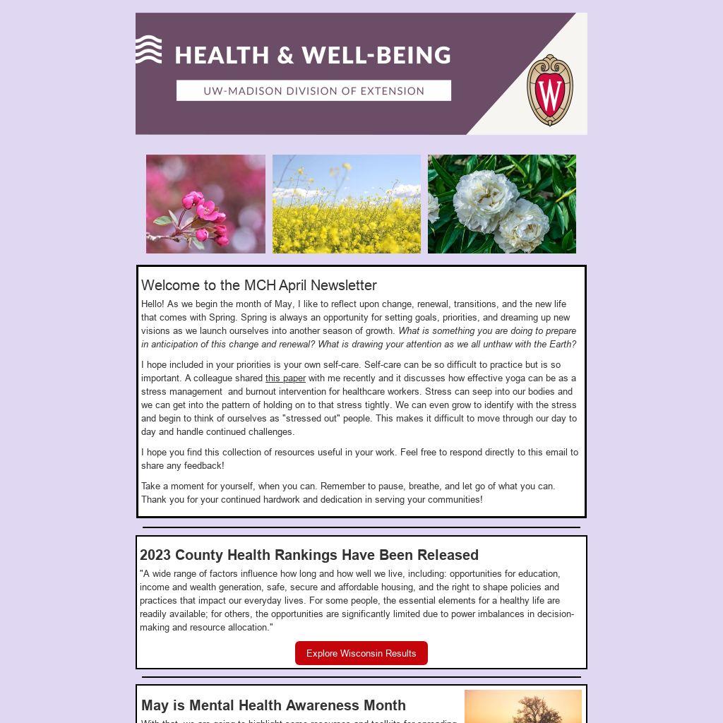 Welcome to the MCH April Newsletter