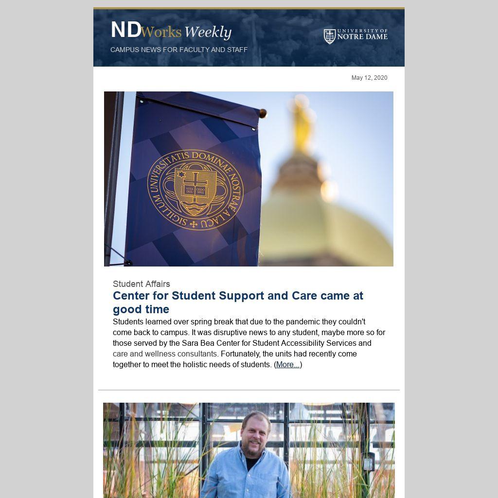The Employee Compassion Fund, funded by Notre Dame faculty and staff as part of the annual United Way campaign, is designed to assist colleagues facing temporary financial difficulties. The grants either permanently resolve the hardship or provide a bridge to a permanent solution. More information is available at unitedway.nd.edu/compassion-fund.