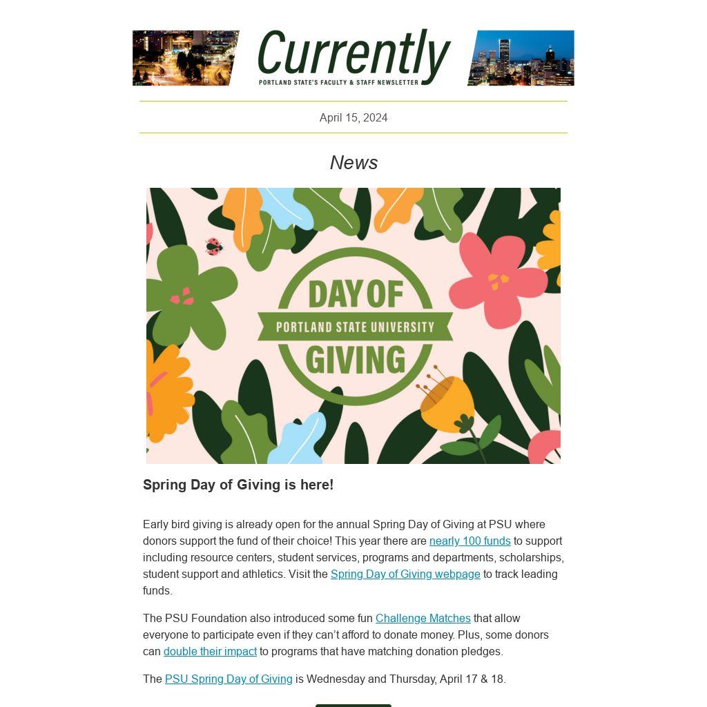 The PSU Spring Day of Giving is Wednesday and Thursday, April 17 & 18.
