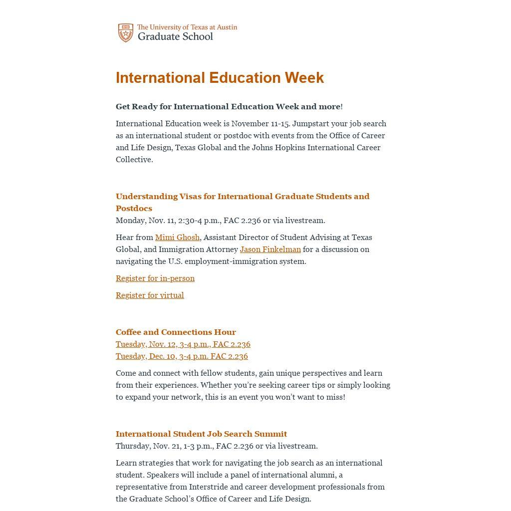 Information sessions on US visas and employment pathways in other countries