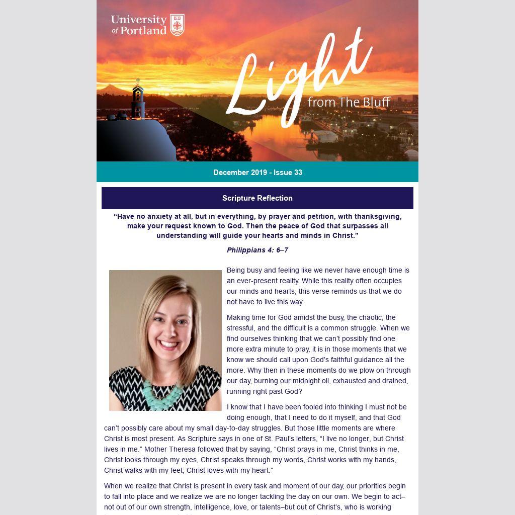 Making time for God amidst the busy, the chaotic, the stressful, and the difficult is a common struggle. When we find ourselves thinking that we can’t possibly find one more extra minute to pray, it is in those moments that we know we should call upon God’s faithful guidance all the more. Why then in these moments do we plow on through our day, burning our midnight oil, exhausted and drained, running right past God?