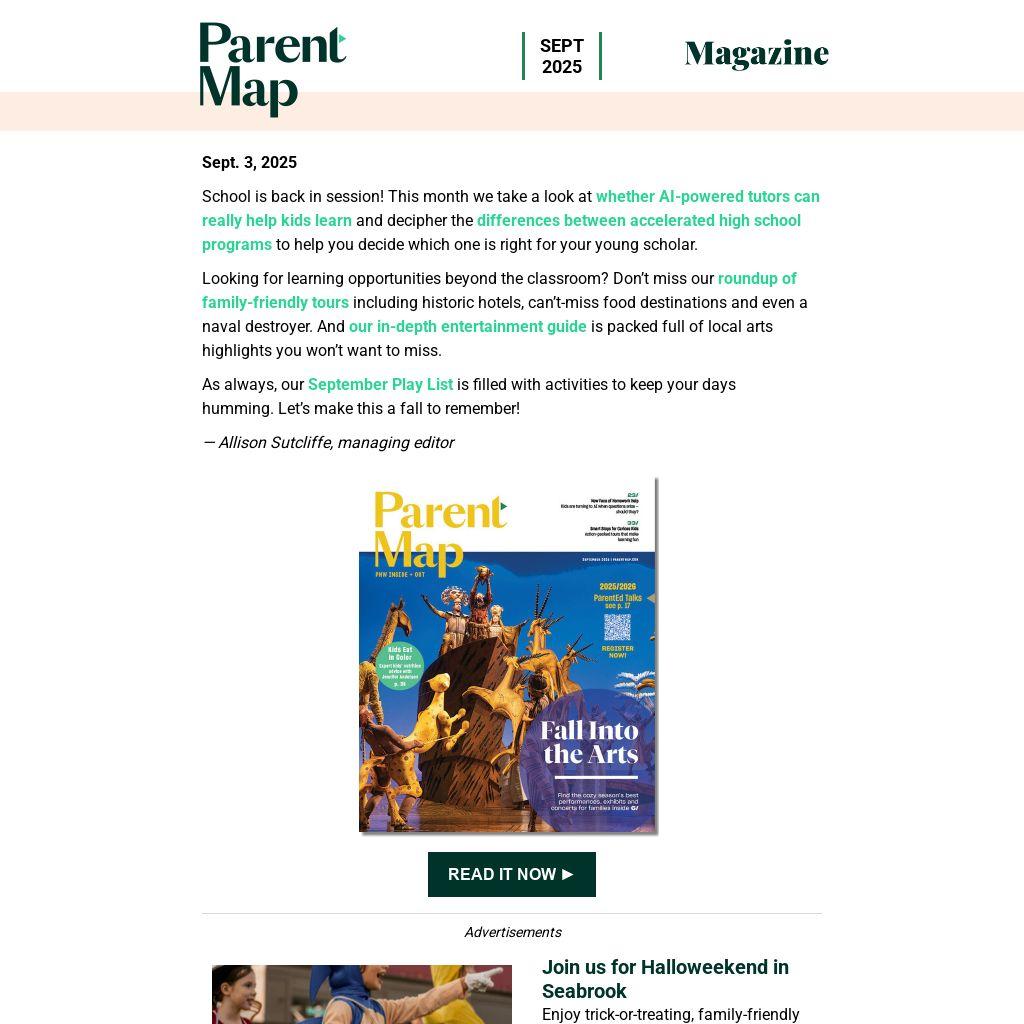 Looking for learning opportunities beyond the classroom? Don’t miss our roundup of family-friendly tours including historic hotels, can’t-miss food destinations and even a naval destroyer. And our in-depth entertainment guide is packed full of local arts highlights you won’t want to miss.Â