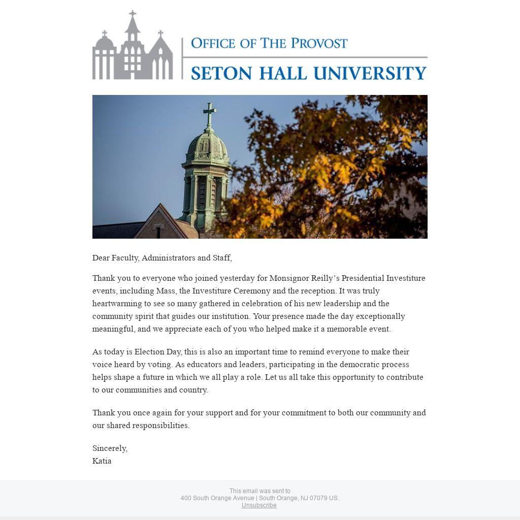 Thank you to everyone who joined yesterday for Monsignor Reilly’s Presidential Investiture events, including Mass, the Investiture Ceremony and the reception. It was truly heartwarming to see so many gathered in celebration of his new leadership and the community spirit that guides our institution. Your presence made the day exceptionally meaningful, and we appreciate each of you who helped make it a memorable event.
