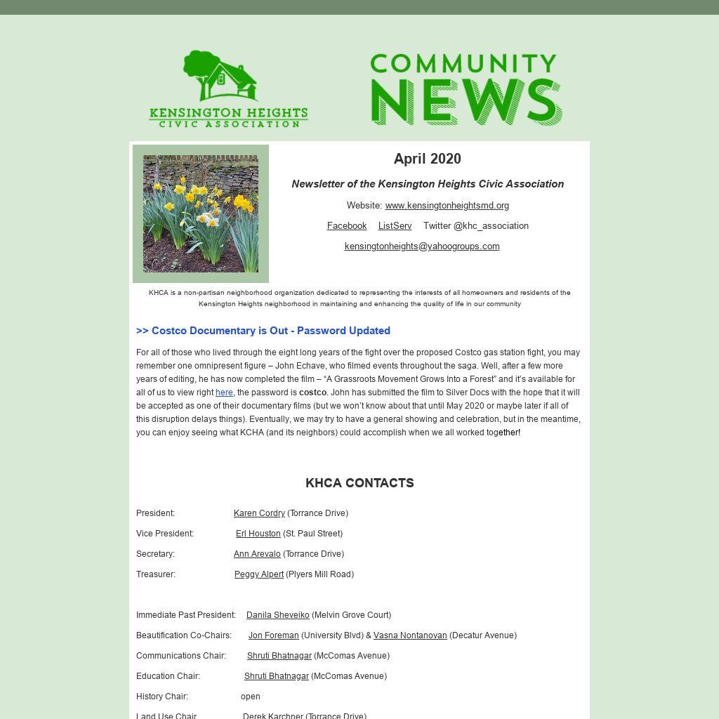 KHCA is a non-partisan neighborhood organization dedicated to representing the interests of all homeowners and residents of the Kensington Heights neighborhood in maintaining and enhancing the quality of life in our community
