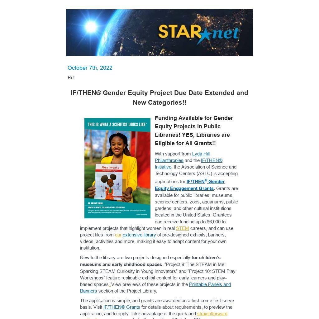 The STAR Library Network (STAR Net) is a hands-on learning network for libraries and their communities across the country. STAR Net focuses on helping library professionals build their STEM skills by providing “science-technology activities and resources” (STAR) and training to use those resources.
