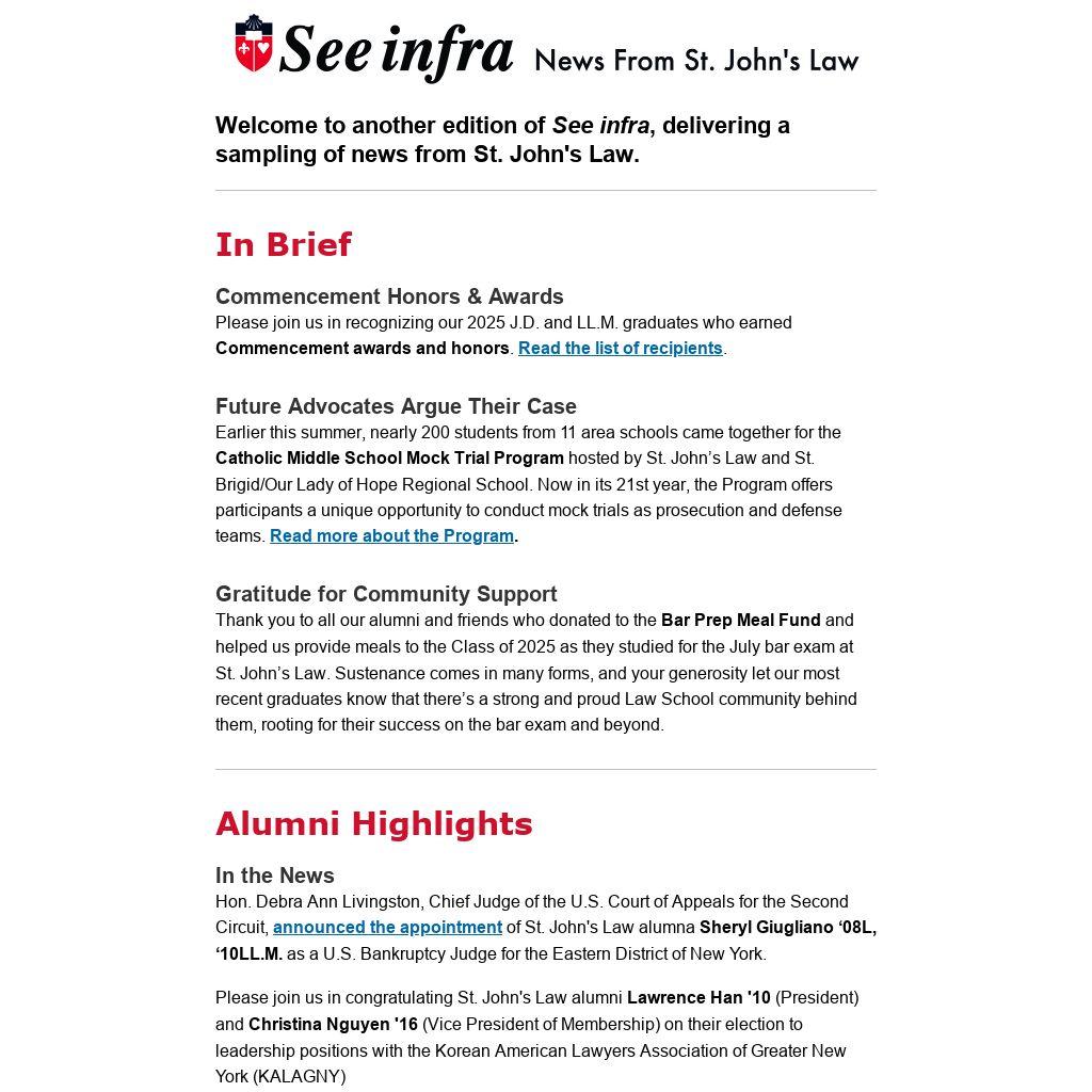 Note: By opting out of this email, you are opting out of all email communications from St. John's Law, including upcoming event emails, newsletters, and giving opportunities. If you would just like to be removed from the See infra newsletter, please email erdena@stjohns.edu.