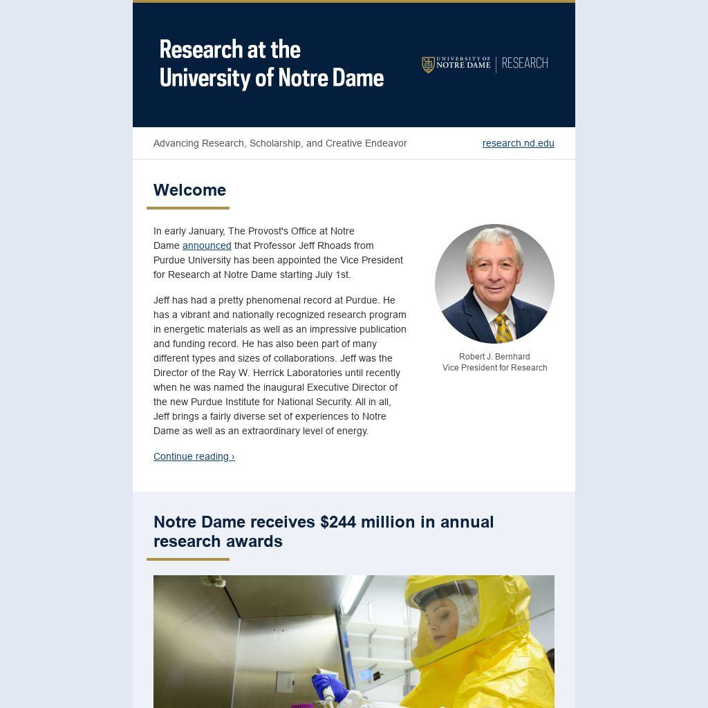 In early January, The Provost's Office at Notre Dame announced that Professor Jeff Rhoads from Purdue University has been appointed the Vice President for Research at Notre Dame starting July 1st.