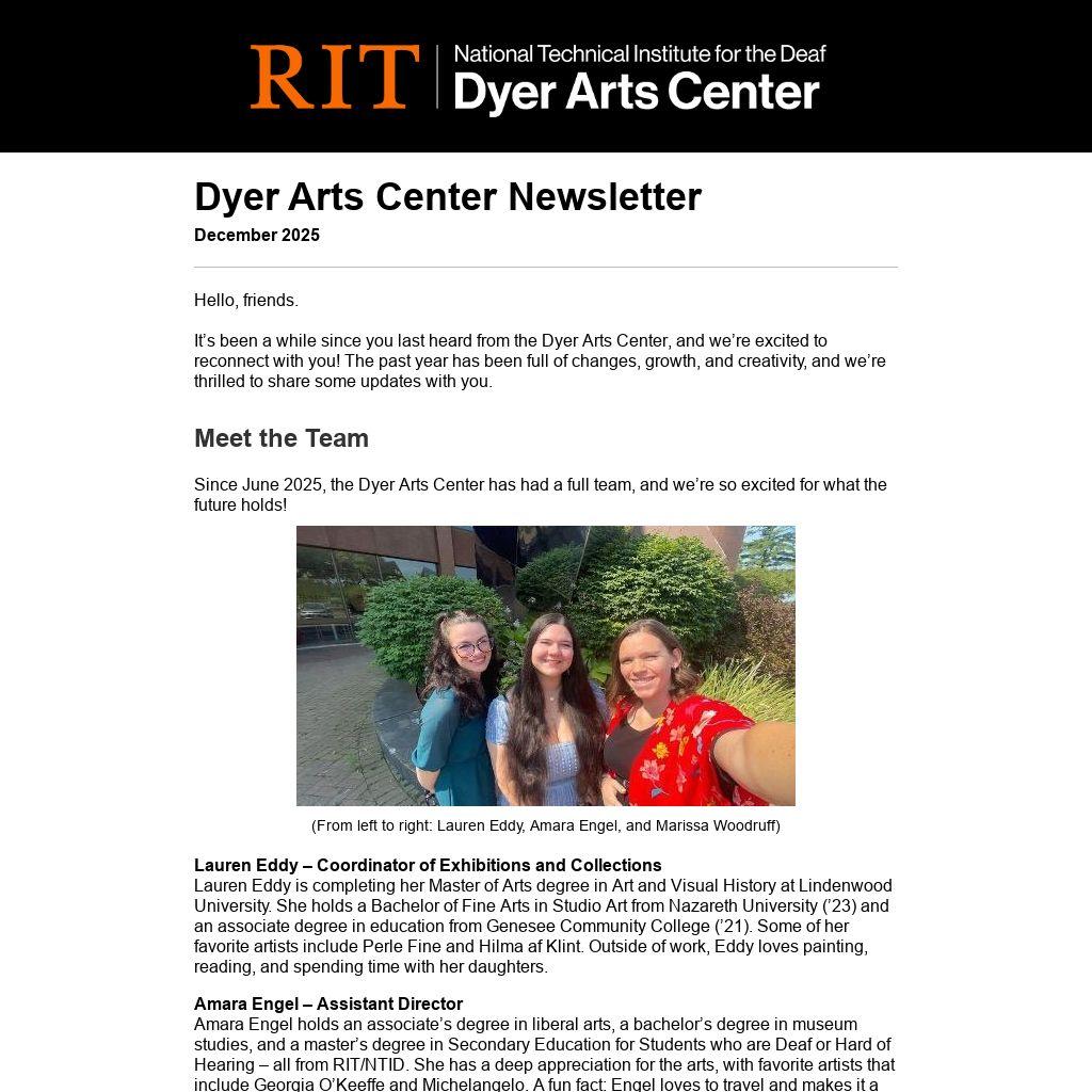 Since June 2025, the Dyer Arts Center has had a full team, and we’re so excited for what the future holds!