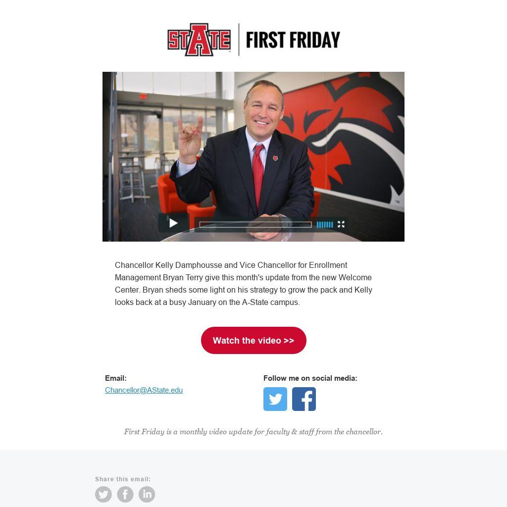 Chancellor Kelly Damphousse and Vice Chancellor for Enrollment Management Bryan Terry give this month's update from the new Welcome Center. Bryan sheds some light on his strategy to grow the pack and Kelly looks back at a busy January on the A-State campus.