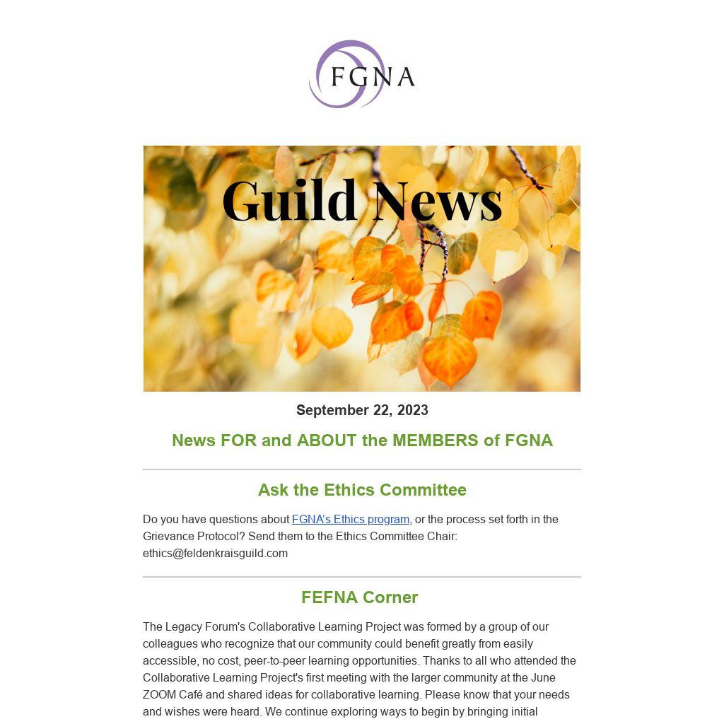 Do you have questions about FGNA’s Ethics program, or the process set forth in the Grievance Protocol? Send them to the Ethics Committee Chair: ethics@feldenkraisguild.com