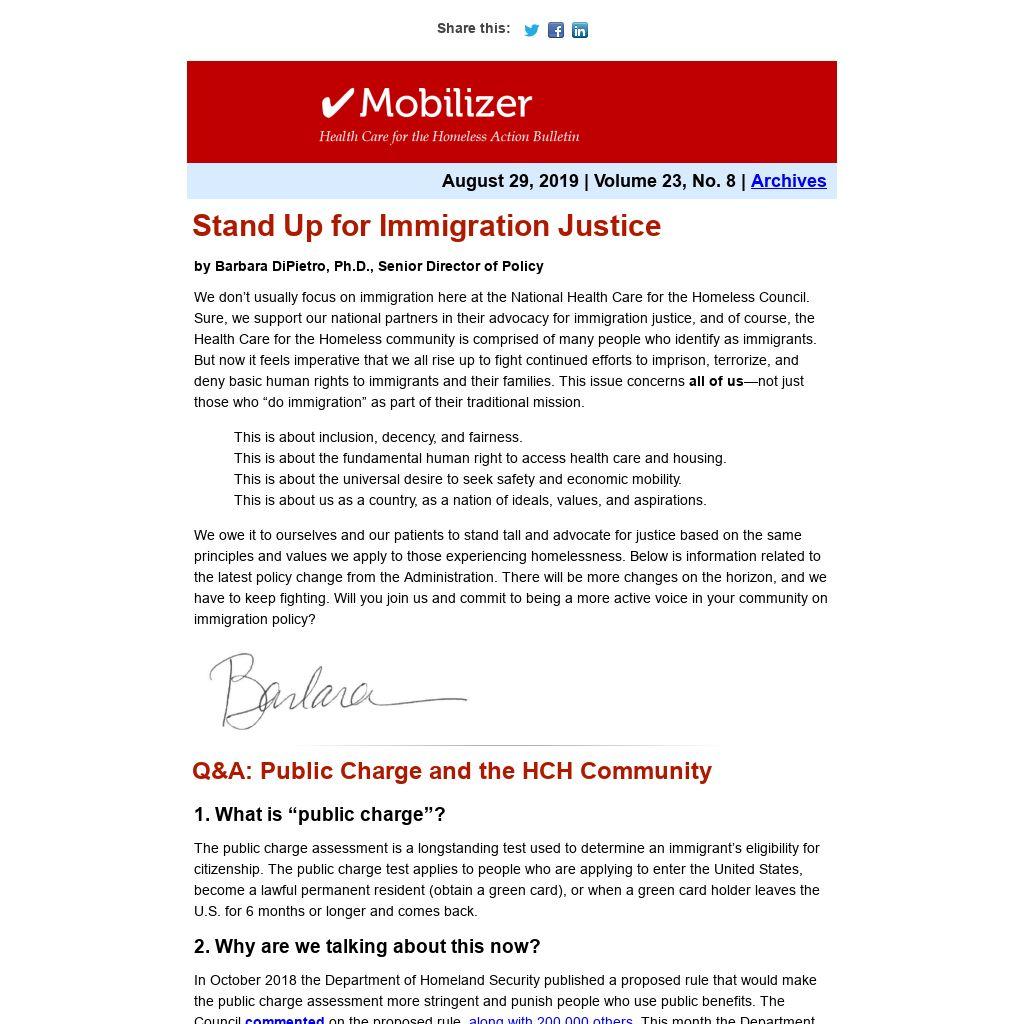 We owe it to ourselves and our patients to stand tall and advocate for justice based on the same principles and values we apply to those experiencing homelessness. Below is information related to the latest policy change from the Administration. There will be more changes on the horizon, and we have to keep fighting. Will you join us and commit to being a more active voice in your community on immigration policy?
