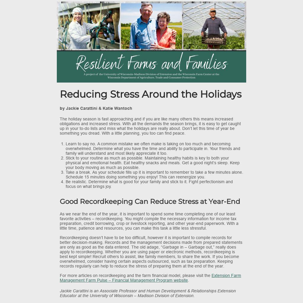 The Wisconsin Farm Center provides access to free, confidential counseling sessions with licensed mental health professionals by phone or video. To learn more about programs and assistance offered through the Wisconsin Farm Center, visit farmcenter.wi.gov or call 1-800-942-2472.