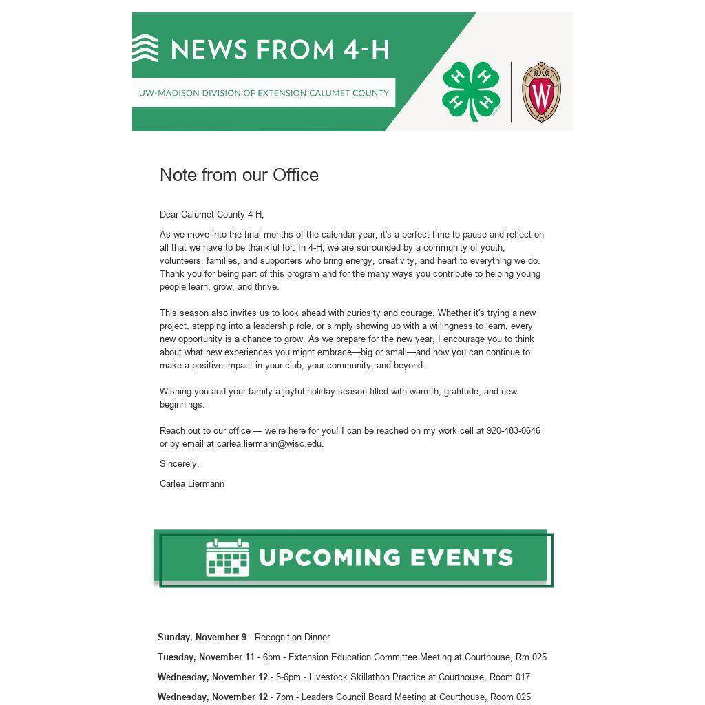 Thursday, November 20 - 6-7pm - Cloverbud Club at Courthouse, Room 025