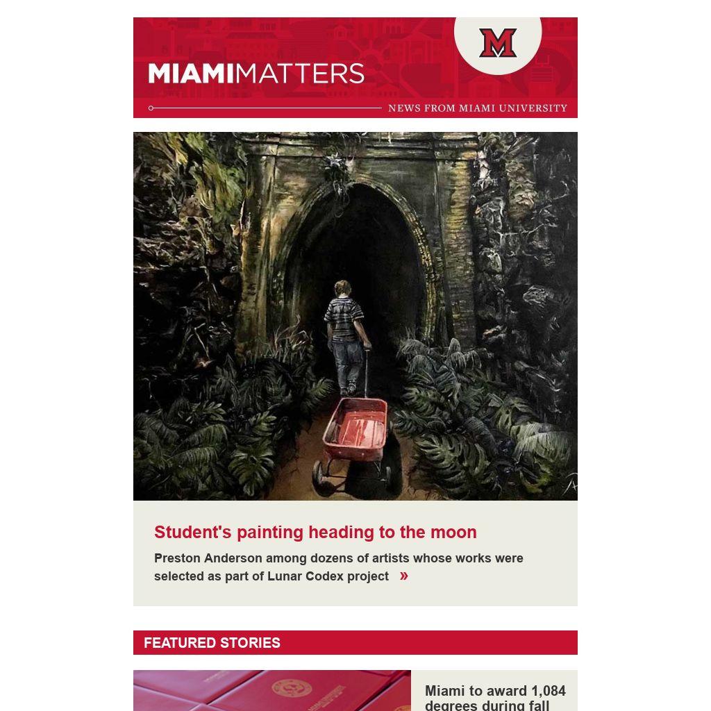 Student's painting heading to moon; Miami football goes bowling