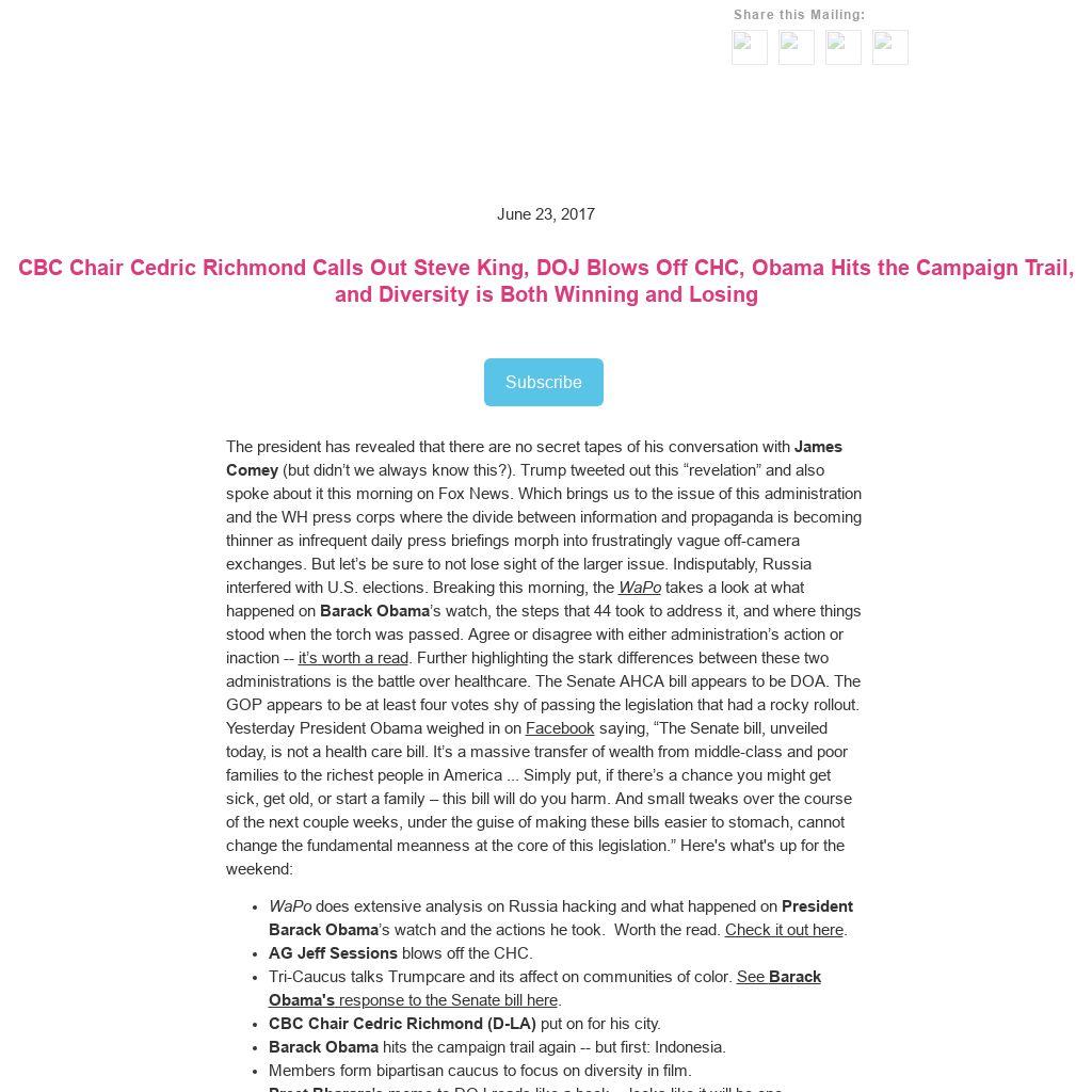 - Tri-Caucus talks Trumpcare and its affect on communities of color. See Barack Obama's response to the Senate bill here.