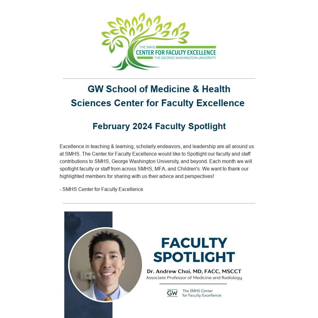 Excellence in teaching & learning, scholarly endeavors, and leadership are all around us at SMHS. The Center for Faculty Excellence would like to Spotlight our faculty and staff contributions to SMHS, George Washington University, and beyond. Each month we will spotlight faculty or staff from across SMHS, MFA, and Children's. We want to thank our highlighted members for sharing with us their advice and perspectives!