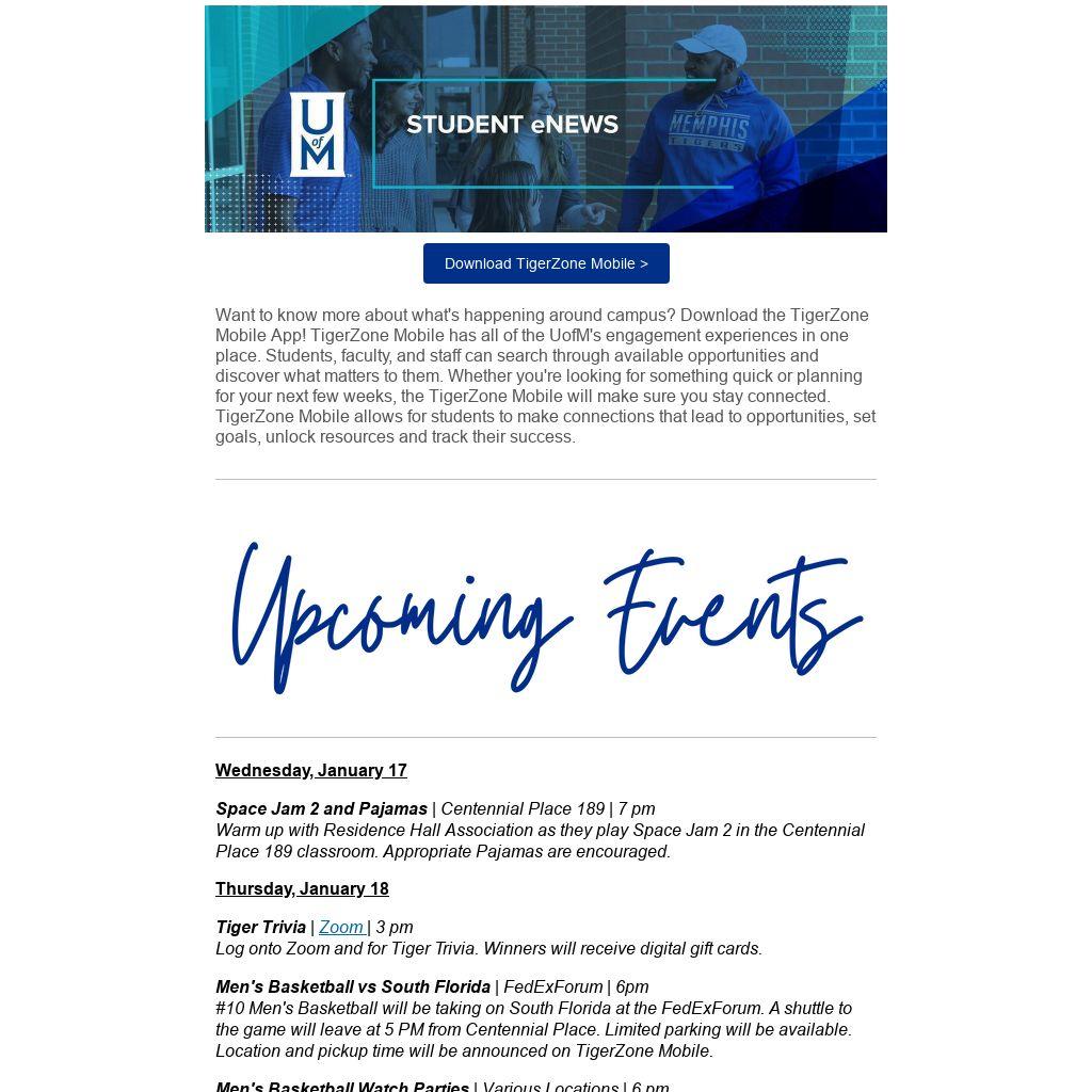 #10 Men's Basketball will be taking on South Florida at the FedExForum. A shuttle to the game will leave at 5 PM from Centennial Place. Limited parking will be available. Location and pickup time will be announced on TigerZone Mobile.