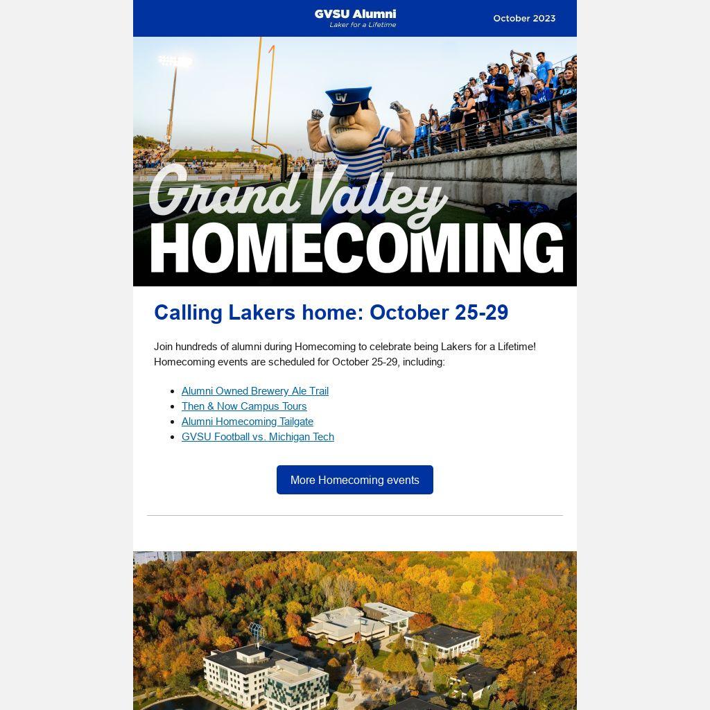Join hundreds of alumni during Homecoming to celebrate being Lakers for a Lifetime! Homecoming events are scheduled for October 25-29, including: