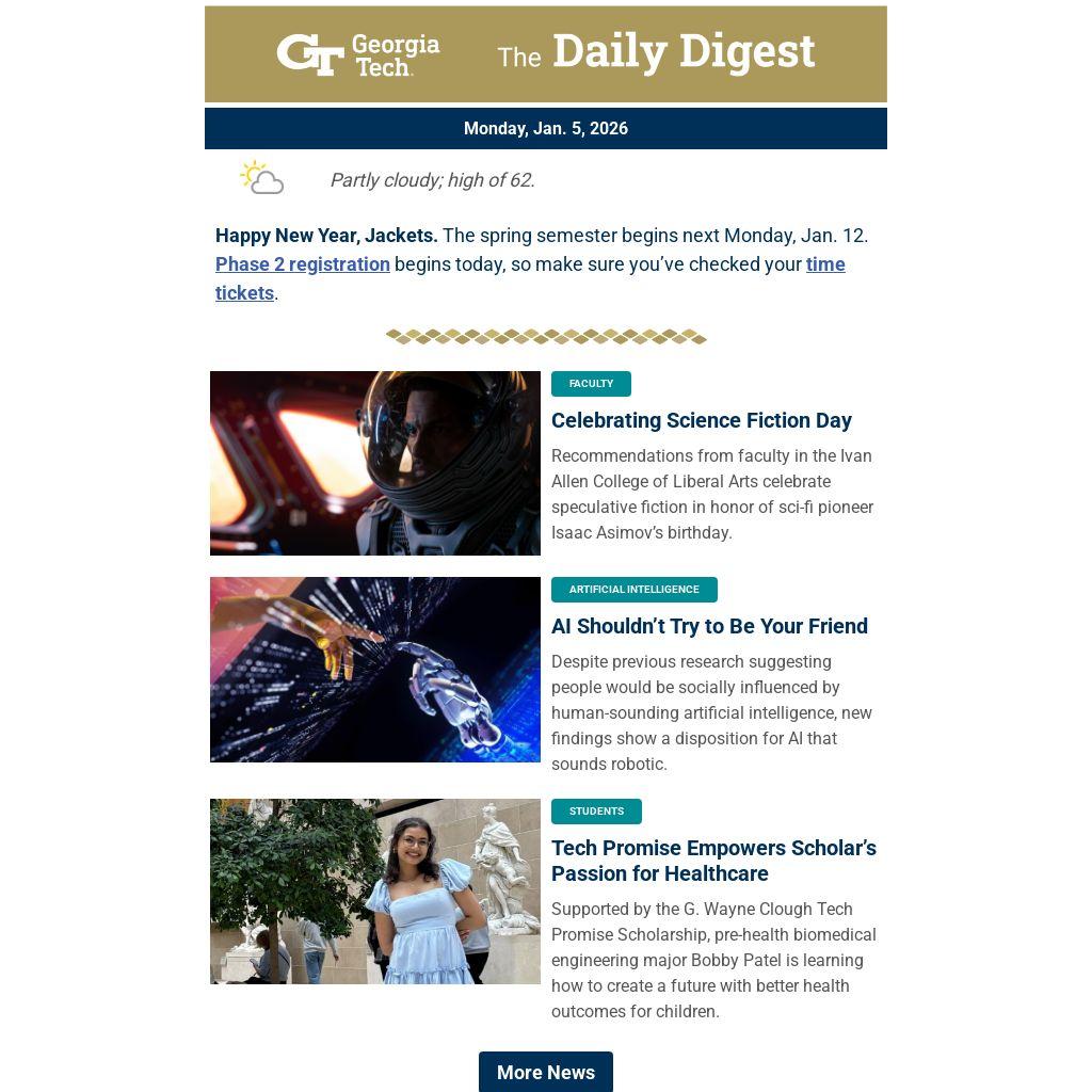 | | Recommendations from faculty in the Ivan Allen College of Liberal Arts celebrate speculative fiction in honor of sci-fi pioneer Isaac Asimov’s birthday.