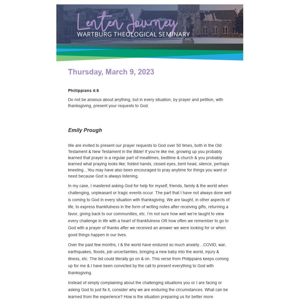 Dear God, we are thankful we can come to you in every situation; grateful for the lessons learned & peace that flows from You as we lay our struggles at Your feet. We look forward, with thankfulness & joy, discovering how each situation we encounter prepares us to live out Your plan for our lives in the world.