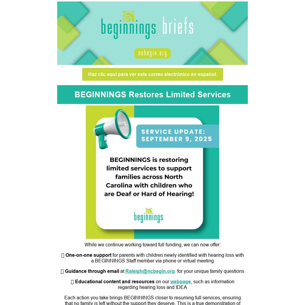 Each action you take brings BEGINNINGS closer to resuming full services, ensuring that no family is left without the support they deserve. This is a true demonstration of how a committed community can come together to create change, and we are so grateful to each of you for being part of this effort. ๐