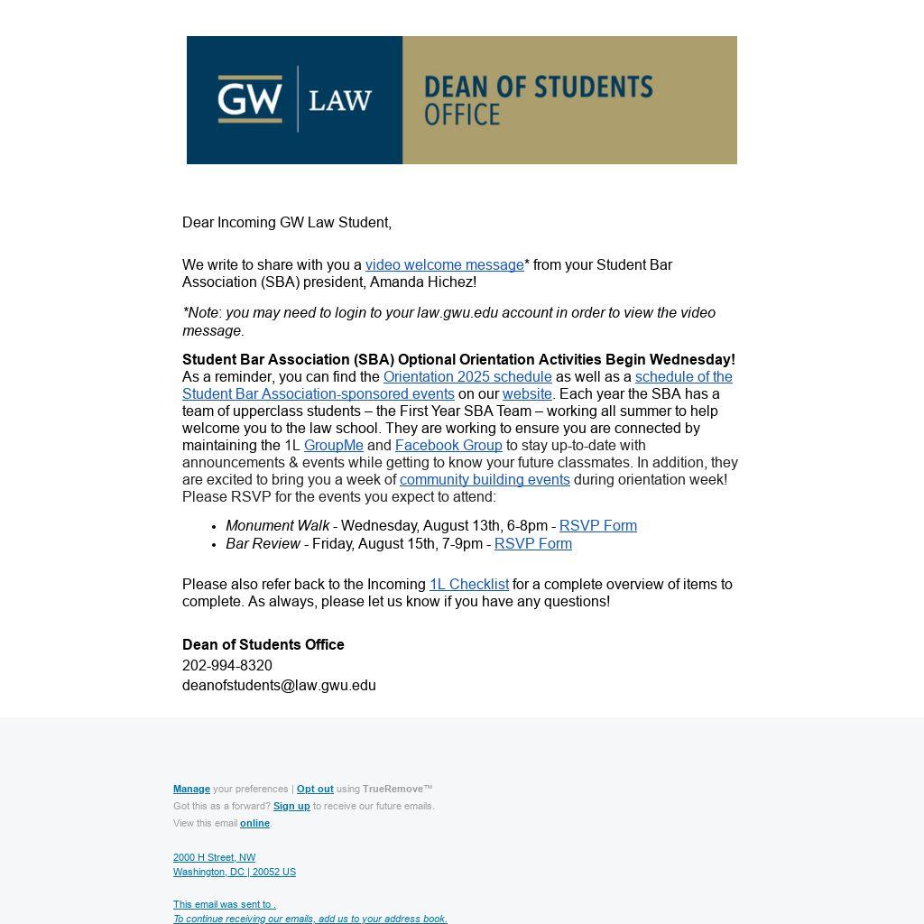 *Note: you may need to login to your law.gwu.edu account in order to view the video message.