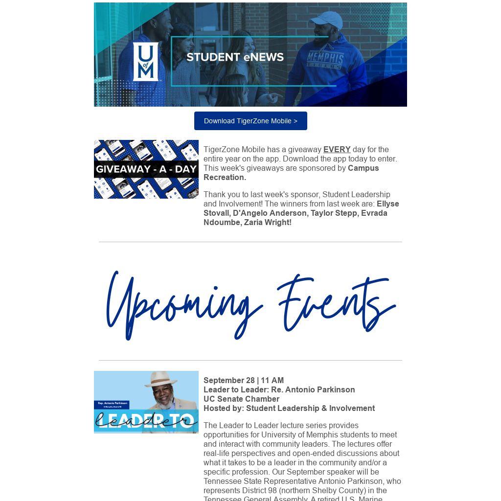 | TigerZone Mobile has a giveaway EVERY day for the entire year on the app. Download the app today to enter. This week's giveaways are sponsored by Campus Recreation.