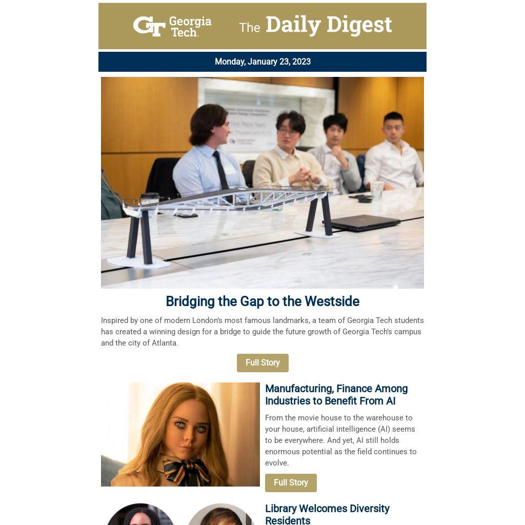 Inspired by one of modern London’s most famous landmarks, a team of Georgia Tech students has created a winning design for a bridge to guide the future growth of Georgia Tech’s campus and the city of Atlanta.