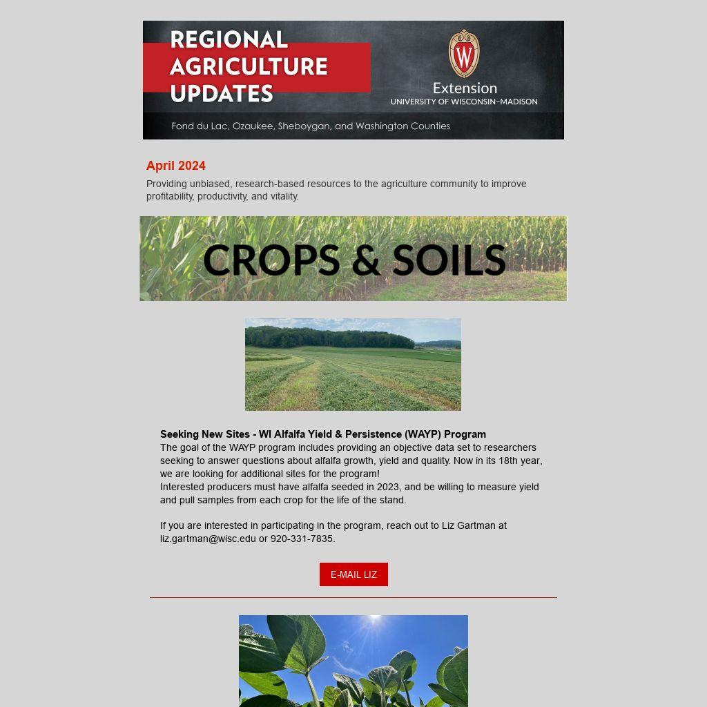 If you are interested in participating in the program, reach out to Liz Gartman at liz.gartman@wisc.edu or 920-331-7835.